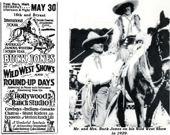 Buck Jones was with Miller Bros. 101 Ranch Wild West in 1913 and Gollmar Bros. Circus in 1914. His first film, a short, “Life on the 101 Ranch, Bliss Oklahoma” was released in 1914. Buck played a sergeant. Like Mix, Buck became a major Western star in the silent era and carried his success over into sound. In 1929 he organized the Buck Jones Wild West and Round Up Days. Montie Montana was with Jones’ show when it opened on May 16. Unfortunately, Buck’s business partner absconded with all the show’s money leaving Jones high and dry in July. Buck quickly joined Robbins Bros. Circus to finish the season.