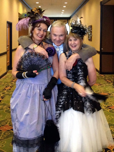 Bonnie Boyd vamped it up for the banquet as a saloon girl. L.Q. Jones, Roberta Shore and Diane Roter in the background.