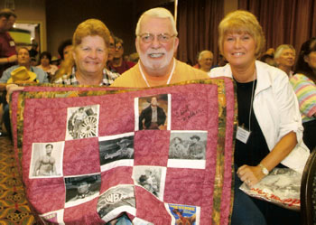 Tony Joynt (center) and his fiancee Yoland Mullenix (right) purchased the “Cheyenne” quilt made by Donna Wilmeth (left) at auction just prior to the Clint Walker panel discussion.