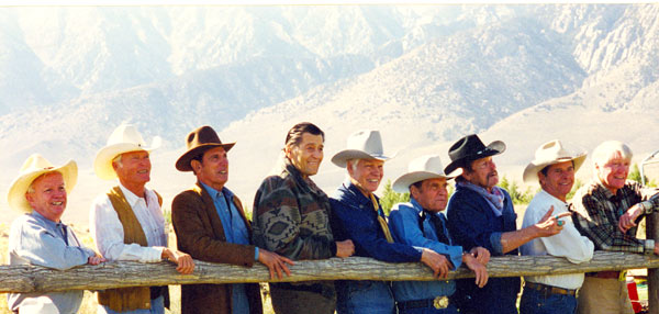 Out amongst the Alabama Hills of Lone Pine, California, Jimmy Rogers (son of Will Rogers), the late Grace Bradley Boyd (Mrs. Hoppy) and Rand (“Lucky”) Brooks.