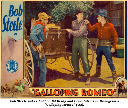 Ernest S. Adams was born in San Francisco, California, June 18, 1885, the son of Leon D. Adams, a San Francisco native, and Laurence G. Girard of Paris, France. Ernie was married to Berdonna Gilbert. The couple spent the early years of their entertainment careers as the vaudeville team of Adams and Gilbert. According to reports, at that time Ernie was quite a song and dance man. Adams came to the film business in 1919 with a role (appropriately) as Shorty in “A Regular Girl”. This film was made back East and Ernie didn’t arrive in Hollywood until 1924. His first film “out west” was “Hutch of the U.S.A.”, a Charles Hutchinson action film. His first Western came a year later in support of Dick Hatton in “My Pal” for Arrow. Ernie actually only made about six westerns in the silent era where he was usually cast as a convict, ex-con, valet, pitchman of some sort—or low-rent gangster.
