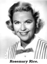 Back to the infernal ring of the Ameche. Sometimes, the news is bad. At my age, I attend almost no weddings, and too many funerals. My life is a necropolis. I no longer smoke cigars, my buddies ain’t havin’ anymore babies. Alas and alack! A beautiful rose fell from the vine. Rosemary Rice. She was only 87, a mere sprig on the tree of life. Remember her on “I Remember Mama?” (CBS-TV, ‘49-‘56.) Her proudest achievements lay in the world of children’s entertainment: writing, narrating, singing in nine albums for Columbia Records, six more for RCA. She recorded many, many books on tape. Possessing a warm voice, charm, talent, Rosemary Rice was one of the all-time great children’s artists. Along the way of her Grand Adventure, she picked up three Clios, a Grammy, an Emmy, Three Peabodys, and The Pulitzer Prize. Babs and I sure were tickled pal-ing around with Rosie at Old-Time radio conventions in Newark, Brockton, Cincinnati and Elmira. Once in Newark, Rosie played Claire Trevor, Chuck McCann drawled John Wayne, and I handled a team o’ hosses as Andy Devine in a rousing radio re-creation of “Stagecoach”. “Yeee Hawww! Giddyup! Here come the Native Americans!” Ah, Rosemary Rice. When I pour rice crispies into my breakfast bowl, I add a dash of rosemary for remembrance.