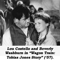 Perhaps Beverly’s most famous TV appearance was her second on “Wagon Train”, “The Tobias Jones Story.” “Lou Costello was a doll. I loved working with him. It was his first dramatic appearance—away from his comedy partner Bud Abbott, and he was so nervous. But so nice. At the time, an article came out on the show and he mentioned me in the story—he said, ‘There was a little girl in the show, Beverly Washburn, and without her I couldn’t An earlier appearance on “Wagon Train” was the premiere episode, “The Willy Moran Story” with Ernest Borgnine. “I was a big fan of Ernest Borgnine before doing this; I had good rapport with him.” As for other cast members, like Marjorie Reynolds and Andrew Duggan, “A lot of actors and directors you meet, they do the job and leave. When you are little, it doesn’t mean anything—then later, you look back and think about who all you met and worked with and wish you had known just who they were when you were with them.” As to locations: “Most of the ‘Wagon Trains’ were shot on the soundstage, but, we did go on location to Iverson’s Ranch, and also Lake Sherwood.” As to Ward Bond: “He was great; he gave me an 8 x 10 which says, ‘To Beverly, the finest little actress.’ Ward Bond did have a foul mouth (Laughs) and the schoolteacher—from the Los Angeles Board of Educators—they called them welfare workers then—she threatened to pull me from the set because of the swearing. They reprimanded Ward. She had every authority to pull me from the set, but fortunately she didn’t, as it would have caused a lot of trouble—delays, wasted money, that sort of thing.” About Robert Horton: “He was cute, very nice to me.” One of Beverly’s most famous roles was in Disney’s classic “Old Yeller”. “That was fun to do—although I knew it was a sad movie. One of the greatest enjoyments was getting to be on the Disney lot, going to school with the Mouseketeers. The school was in a big red trailer on the lot. I didn’t think I’d get the part, because Disney had so many kids under contract. But I read for it, and got it! I’m still friends with a lot of the kids I met during that film.”
