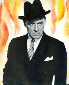 Dr. Satan in Republic’s “Mysterious Dr. Satan” (‘40) was Italian born Eduardo Ciannelli. Born in Ischaia (near Naples) on August 30, 1889, his father operated a health spa and wanted one of his four sons to become a doctor. Eduardo, the youngest, obtained an M.D. degree but did not pursue a career in medicine. Instead, with a fine voice, he sang grand opera and migrated to the U.S. after WWI where he appeared in several musical comedies. His outstanding talent led him to Broadway in “Always You”, a 1920 musical-comedy. Seventeen other Broadway productions followed, including “Rose Marie”, “The Front Page”, “inspector General” and “Winterset”. It was his great success as Trock Estrella in the latter that caused RKO Radio to bring Ciannelli to Hollywood when they purchased the rights to the play in 1936. Equally successful in the film version, he went immediately to Warner Bros. to play Bette Davis’ gangster menace in “Marked Woman”. This was followed by a long succession of excellent films—in many of which he was cast as a gangster or villain (“Foreign Correspondent”, “For Whom the Bell Tolls”, “Bulldog Drummond’s Bride”, “Blind Alibi”, “Gunga Din”, “Angels Wash Their Faces”, “Mummy’s Hand”, “Kitty Foyle”, “Dr. Broadway”, “Mask of Dimitrios”, “Dillinger”, “Crime Doctor’s Warning”, “Gilda”, “Joe Palooka, Champ”, “The Creeper”, etc.). To each, with his dark lined features, expressive eyes and pronounced accent, he lent a descriptive portrayal. Republic’s “Mysterious Dr. Satan” was his first serial, and he was malevolently unforgettable as a brilliant but demented devilish man of science bent on dreams of world conquest by creating an army of mechanical men. His visual portrayal of Dr. Satan brought to life one of the all time great serial villains. Of course he was defeated by Robert Wilcox as The Copperhead—originally intended to be Superman but negotiations broke down at the last minute between Republic and Superman, Inc., causing a vast rewrite. Two years later in “Sky Raiders” at Universal in 1942, Ciannelli played Felix Lynx, agent for an unnamed foreign government who is kept informed of aviation hero Donald Woods’ activities by a spy in Woods’ office as Lynx attempts to steal the plans for a new type of fighter plane and bombsight developed by Woods.