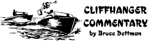 In “Miracle Rider”, at the conclusion of Ch. 13, Joan Gale’s car full of explosive X-94 goes over an embankment and we clearly hear an explosion, but in Ch. 14 her car simply goes over the embankment and rolls to a stop with no explosion.