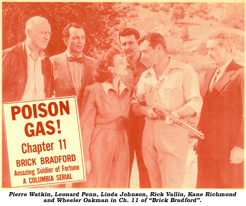 Pierre Watkin, Leonard Penn, Linda Johnson, Rick Vallin, Kane Richmond and Wheeler Oakman in Ch. 11 of "Brick Bradford".