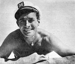 Ever the sportsman, 6'4" Jocko and his horse Rebel on the beach at Paradise Cove, Laguna Beach, CA.