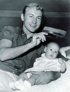 Nick Adams’ “Rebel” cap is a bit big for his new born daughter Allison.