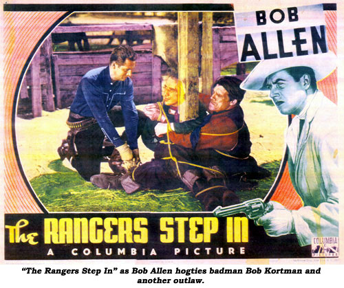 Bob Allen had played second string to Tim McCoy in three B’s in ‘35 and convinced producer Larry Darmour he was star material, so for the ‘36-‘37 season Darmour dropped the difficult Ken Maynard and in rode Ranger Bob on Columbia’s releasing schedule.