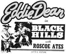“BLACK HILLS” (‘47 PRC) As perfect an example of a mid ‘40s no-brainer Saturday afternoon singing cowboy B-western as you could possibly get. Simple plot—saloon owner Terry Frost and his gun hawks kill rancher Steve Clark for the gold mine on his property—plenty of fistfights (one of Dean’s best), gunplay, hard riding, chases, stage holdups, with three songs by Eddie, Andy Parker and the Plainsmen woven in as Eddie helps Clark’s daughter (beautiful Shirley Patterson) find her father’s killer. No thinking required, a Pepsi (or a Bud), some popcorn and this typical low budget PRC leaves your B-western appetite for thrills totally satiated.