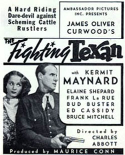 Ad for "The Fighting Trooper" with Kermit Maynard. Ambassador Pictures between ‘34-‘37. All of Conn’s productions had a classier look than most independent product of the ‘30s. Conn (1906-1973) was later an associate producer at Grand National (“Frontier Scout”) and a producer for Tim McCoy and Jack Randall films at Monogram. Still later, he was an indie producer of non-westerns at various studios.
