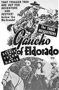 GAUCHOS OF EL DORADO (‘41 Republic) The fifth and final time around for this plot! When a bandido known as The Gaucho (Duncan Renaldo—a former Mesquiteer himself) is killed by his outlaw gang while trying to take $5,000 to the mother he hasn’t seen for many years in order to pay off her upcoming mortgage, the Mesquiteers intervene. The mother mistakenly believes Bob to be her long lost son. From there it’s a merry mix-up of action and adventure as the Mesquiteers unravel all the problems caused by the gang (one of which is soon to be B-Western star Eddie Dean). This is an uncredited remake of Jack Hoxie’s “Gun Law” (‘33) written by Oliver Drake. Also remade as “Cyclone Ranger” with Bill Cody (‘35), “Melody of the Plains” with Fred Scott (‘37) and “Bullet Code” with George O’Brien (‘40).