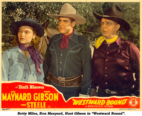 WESTWARD BOUND (‘44 Monogram) The Trail Blazers (Maynard, Gibson, Steele) ride, fight, rope and provide plenty of adventure, thrills and fun as they go into nearly constant action against a land grabbing bunch of owlhoots who would use oncoming Montana statehood to their own greedy advantage.